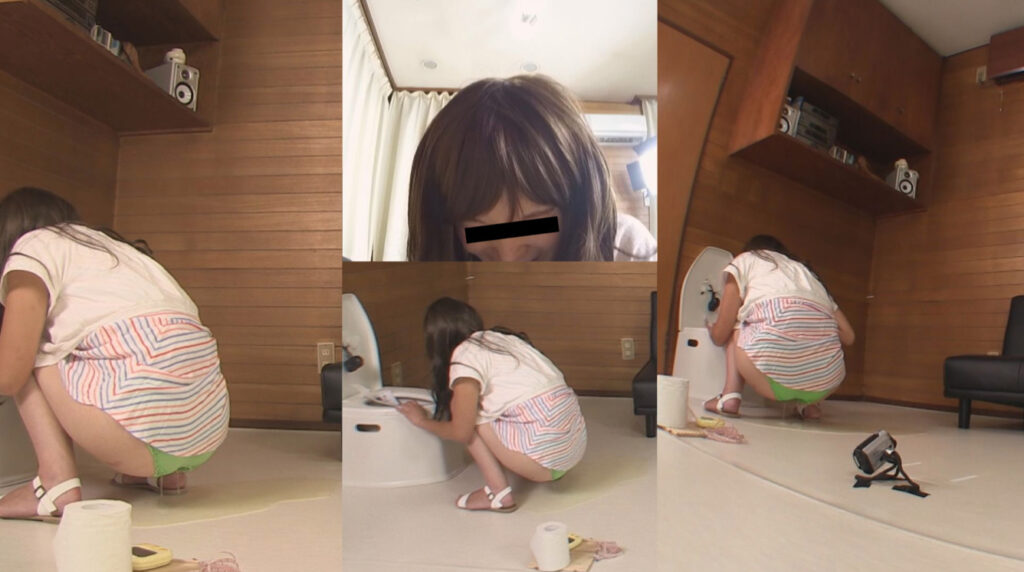 水色のパンツを脱ぎ、一人でトイレットペーパーで処理するみきでした。