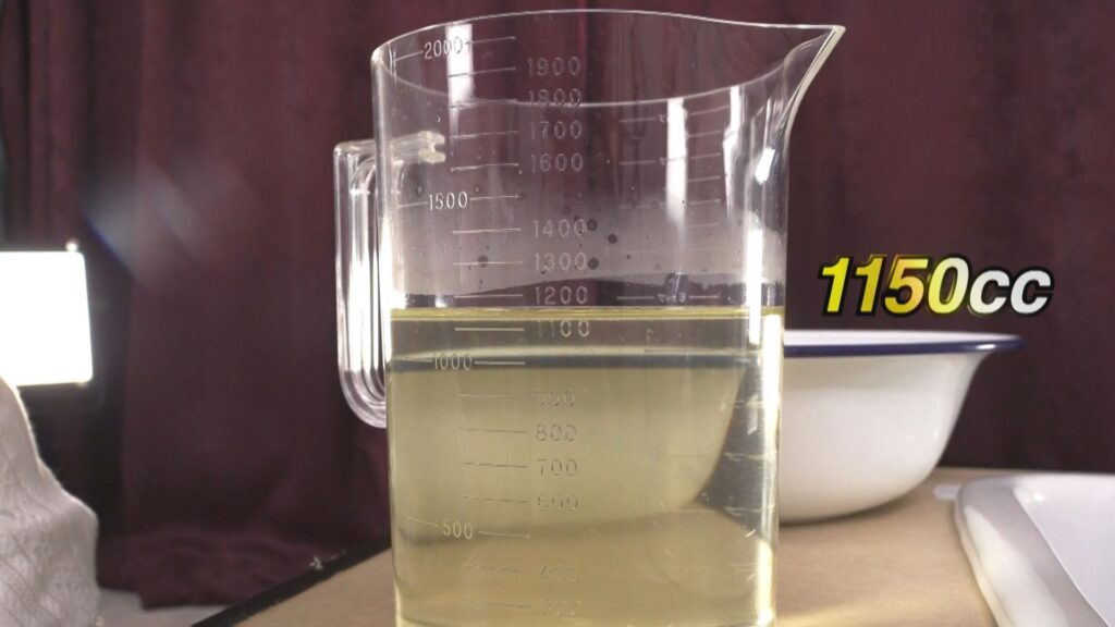 尿量は1Lジャスト!! すんごいチョロチョロでしたが、とんでもない時間をかけて放尿していたので「塵も積もれば山となる」を体現した放尿な気がしますw