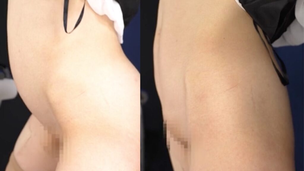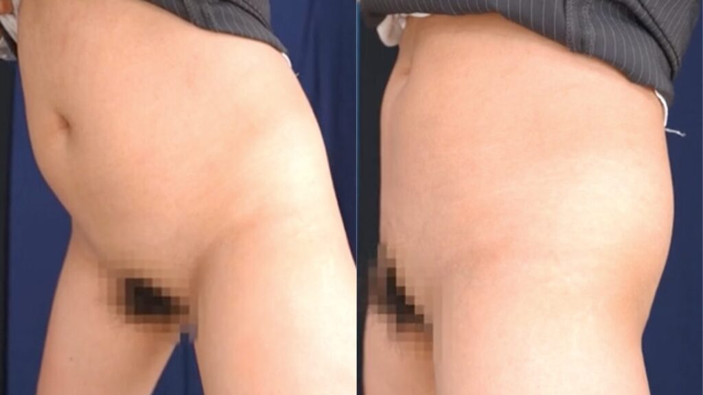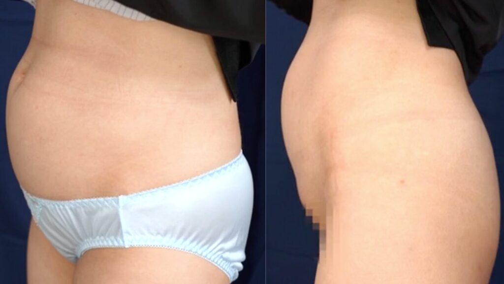 そしてお待ちかねのお腹の比較がこちらです。ちょっと分かりにくいかもしれませんが、画像で見るよりも実際に映像で見た方がハッキリ分かると思います。