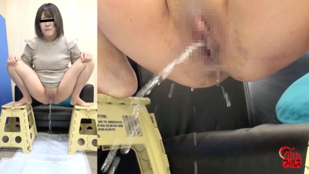 初体験の話などを話してくれます笑 椅子に座った状態で放尿を始めてくれましたよ↓