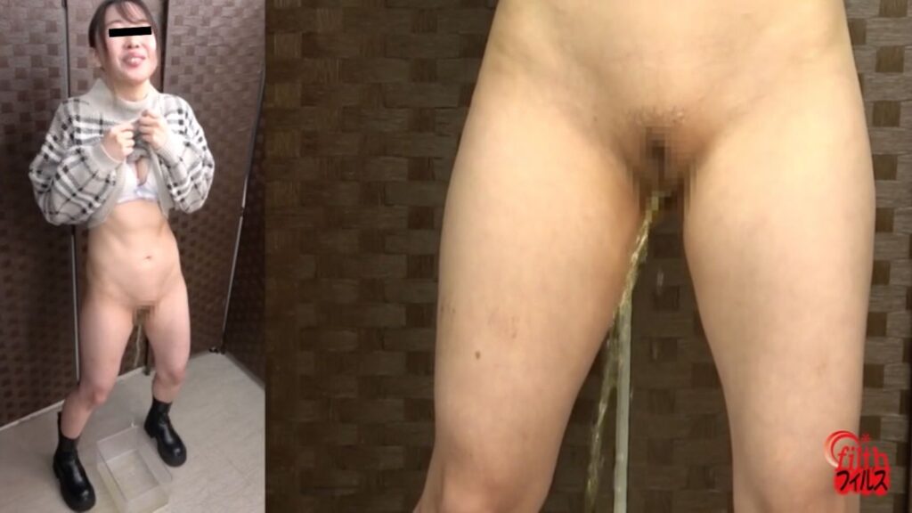 そんな彼女は恥じらいがありつつも笑いながら下半身をすっぽんぽんにしていました。そこから放尿までは比較的早いです↓
