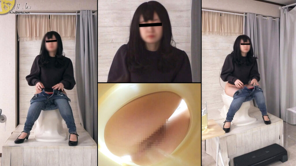 その後は2人でガールズおしっこトークを繰り広げます。17分あたりからスタジオに移動しました。彼女を一人にするかと思いきや、女性スタッフはその後も一緒にいます。開始から31分ほどで限界放尿が始まりました↓