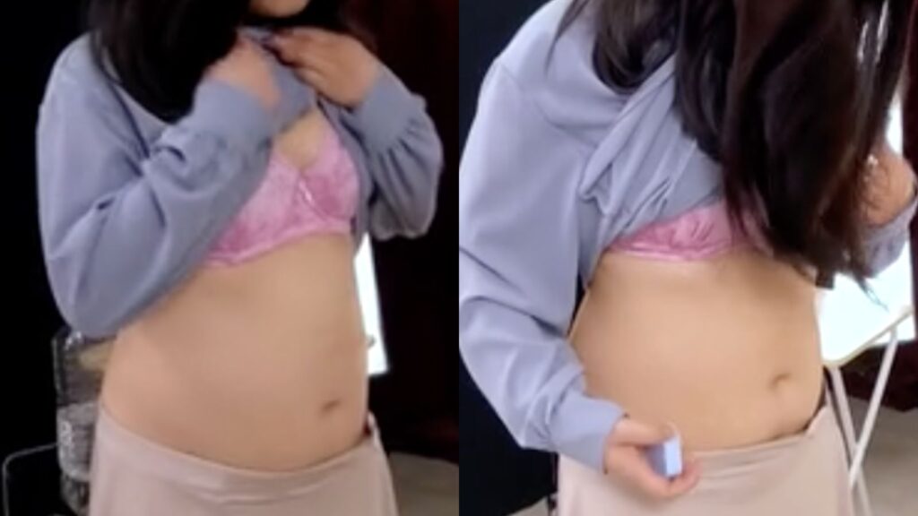 2回目がこちらです。まずはお着替えシーンから収録されていて、その時点で彼女の下腹部がとんでもないことになっているのも確認出来ます。
