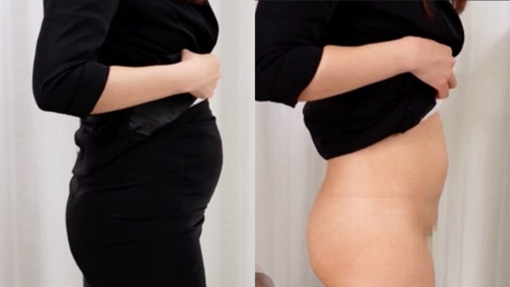 気になるお腹の膨らみがこちら。しっかりとスッキリしているお腹が確認いただけると思います。見せ方も素晴らしいので膀胱の変化指標は星3にしています。