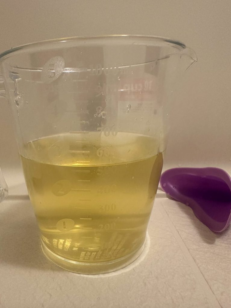 ちなみに使用後の中身はこんな感じでした。見えている雫は全て妻のおしっこです笑 そして今まで逆向きにおしっこを出していたので、今回の正しい向きでの変化はあったのかを問うと「言うて全然変わらん」とか言ってました笑