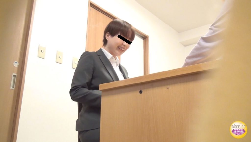 そんな彼女は契約が取れそうな雰囲気になりますが、モジモジが激しく落ち着きがありません。途中トイレに立ちますが、エレベーターを待つ時点で漏れそうになっていますよ。ちょっとオーバーですけど笑