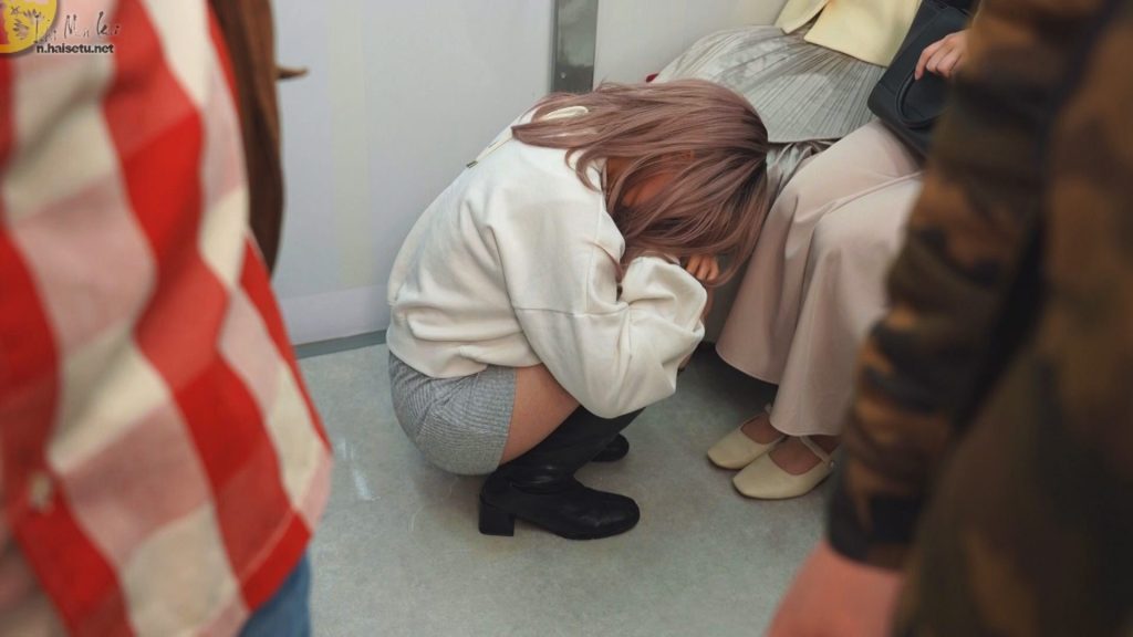 お漏らしが終わってから始めて「おしっこ・・・?」みたいな周りの声が聞こえてきます。彼女は顔を手で隠したりして恥ずかしそうにしていましたよ。